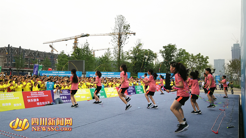 活动仪式上,世大会啦啦操选拔赛成都代表队进行暖场表演,在蓉高校大学生跑团积极参与健身跑,为国际顶级赛事营造良好体育氛围,从而吸引、汇聚世界顶级赛事活动落户成都,进一步奠定成都打造世界赛事名城基础。