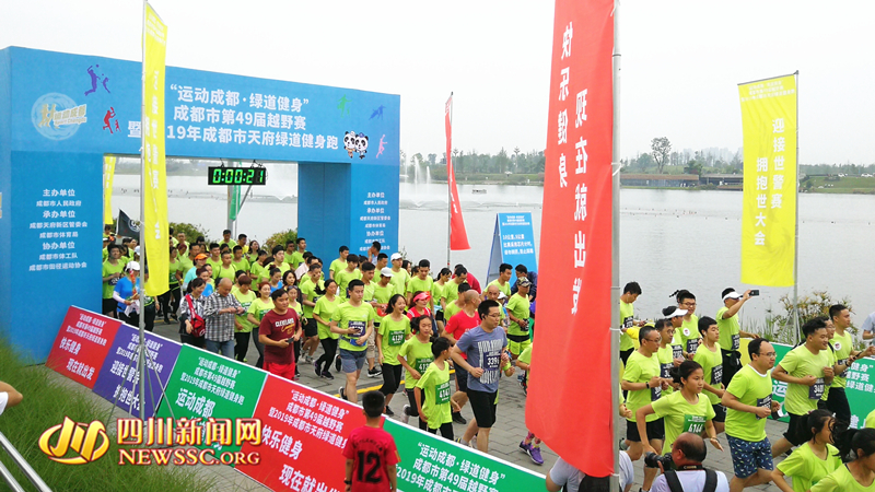 四川新闻网成都5月18日讯(记者 漆奇 摄影报道)5月18日上午9点,“运动成都·绿道健身”——成都市第49届越野赛暨2019年成都市天府绿道健身跑在天府公园鸣枪起跑。在这个被市民称为“成都最大的城市公园”的地方,5000余名参赛选手一同跑进初夏的美艳芬芳。