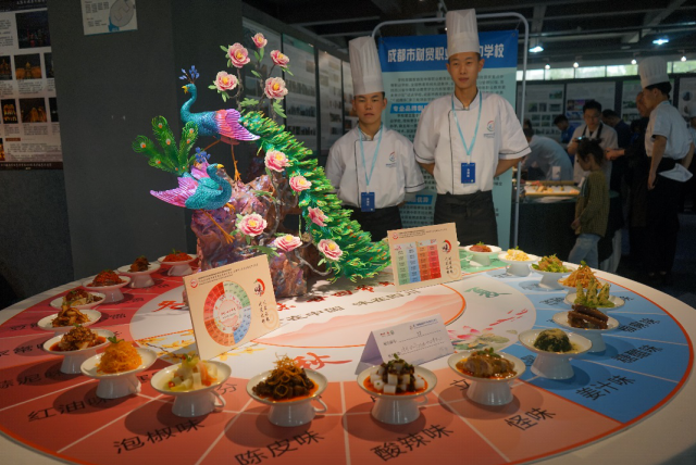 四川新闻网成都5月21日讯 说到川菜,大家的第一印象都是“辣”,但实际上,正宗的川菜,不只有鲜红的辣椒,还有更多丰富的味道。5月20日,四川旅游学院内,第二届国际青年学生烹饪艺术节现场,由李锦记希望厨师彭淼、袁县义设计制作的“24味 廿四节气——食在中国 味在四川”烹饪艺术展台吸引了众多参赛者的目光,获得“中职院校最佳创意奖”。同时,另3名李锦记希望厨师苏英、杨川江和多吉泽郎分别获得“第二届国际青年学生烹饪艺术节烹饪技能大赛”凉菜、热菜和面点组的一等奖和三等奖。