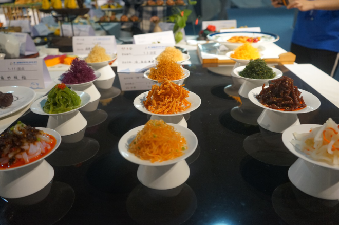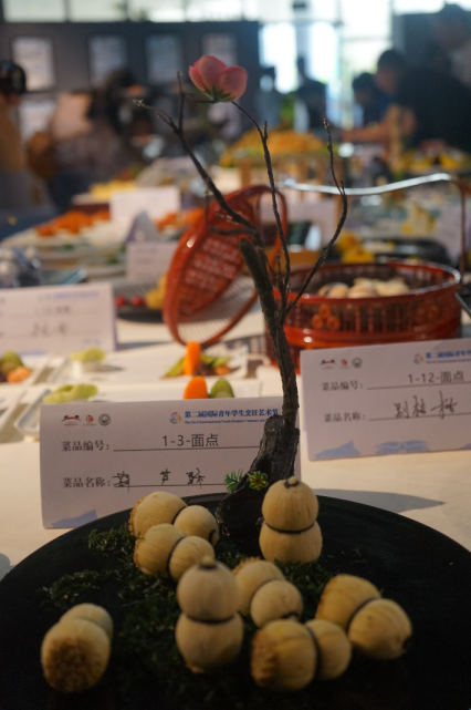 5月20日上午,在第二届国际青年学生烹饪艺术节上,来自成都财贸职业高级中学校的李锦记希望厨师彭淼、袁县义给出了完美的回答:他们巧妙地将川菜的24种味型与24节气相结合,一道凉菜体现一种味型,同时也代表了一个节气,再辅以“凤凰”面塑作品,配合展板画面主题,现场演绎出了节气与味型的关系。例如“立夏”对应“香糟味”,每一个节气都对应了一项具有代表性的川菜味型,从咸鲜味到五香味再到麻辣味,每一种味道都找到了相应的节气代表,令人在领略到川菜丰富的同时,也感受到了中华优秀传统文化,毫无悬念获得“中职院校最佳创意奖”。