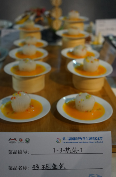热菜组杨川江的作品“玲珑玉(鱼)包”在色泽、口味、造型等方面展现优异,获得热菜组铜牌。“玲珑玉(鱼)包”主材料为鱼,制作成鱼茸后,通过烹调的技艺、雕刻的巧妙,最终呈现出包子造型,晶莹剔透,再配上有质感的器皿,整个造型十分靓丽惹眼。杨川江在2017年幸运地被“李锦记希望厨师”项目录取,在成都财贸职高经过老师的悉心教导,不仅川菜课进步飞速,德智体方面也全面发展,曾获得成都市金牛区优秀班干部的荣誉。