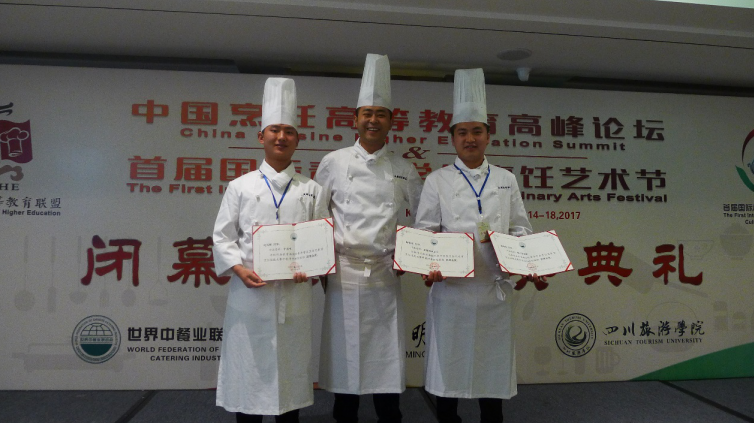 此次艺术节的烹饪比赛中,来自四川省成都市财贸职业高级中学校的李锦记希望厨师参加了凉菜、热菜和面点组的比赛,并分别获得1枚金牌,2枚铜牌。