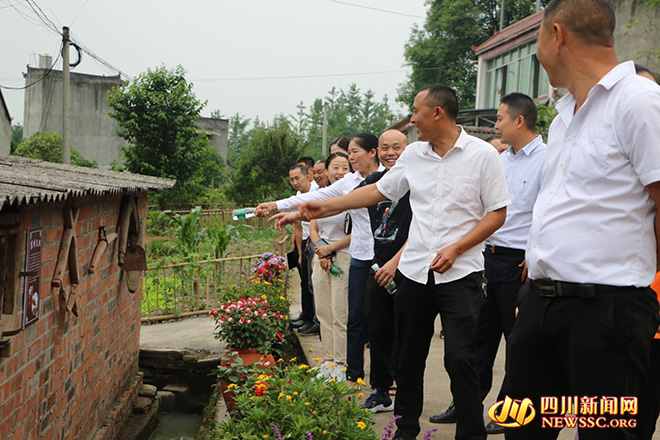 随后,拉练队伍来到小堰沟村。小堰沟村村舍错落有致,院落集中分布,民风淳朴自然,乡韵十足。曾获评2017年天府新区“风尚新美、环境秀美、生活富美”示范村,天府新区文明村,成都市“基层综合性文化服务中心建设”试点单位。本次环境提升行动中,小堰沟村村民积极参与,凝心聚力,认真推进房前屋后整治工作,做好公共区域卫生的“三清三改”,设立农村垃圾堆肥点1处,整治小广场2处,清理农村垃圾10处,增景增绿12处,自发编织黄竹篱笆300米,为小堰沟村全面推进人居环境整治工作起到引领示范作用。依托小堰沟村1组独特的地理位置的优势,充分利用丰富的水资源,保留村舍原貌,就地取材,就近搜集石缸、石磨、鹅卵石等,打造月牙缸生态水景2处,微景观瀑布1处,搭建石板步道400米,充分体现物尽其用的生态价值。