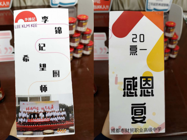 2011年,李锦记希望厨师项目由李锦记发起,集聚各方力量,全额资助(全额学杂费+生活补助+交通补贴)有志青年免费学厨圆梦,作为中餐业发展培养未来之星的“精准扶贫”公益计划,是李锦记“思利及人”的核心价值观和“发扬中华优秀饮食文化”的企业使命的重要实践。2013年,该项目落地四川,与成都市财贸职业高级中学校结缘。而感恩宴正是李锦记希望厨师成都班的传统,每年5月,高二的希望厨师们会亲自策划,从菜单选配、摆盘设计,到食材选购、菜品烹制,诚挚邀请自己的亲人、老师以及李锦记酱料集团代表参加感恩宴,展现自己两年学习成果的同时,也向所爱之人表达感恩。