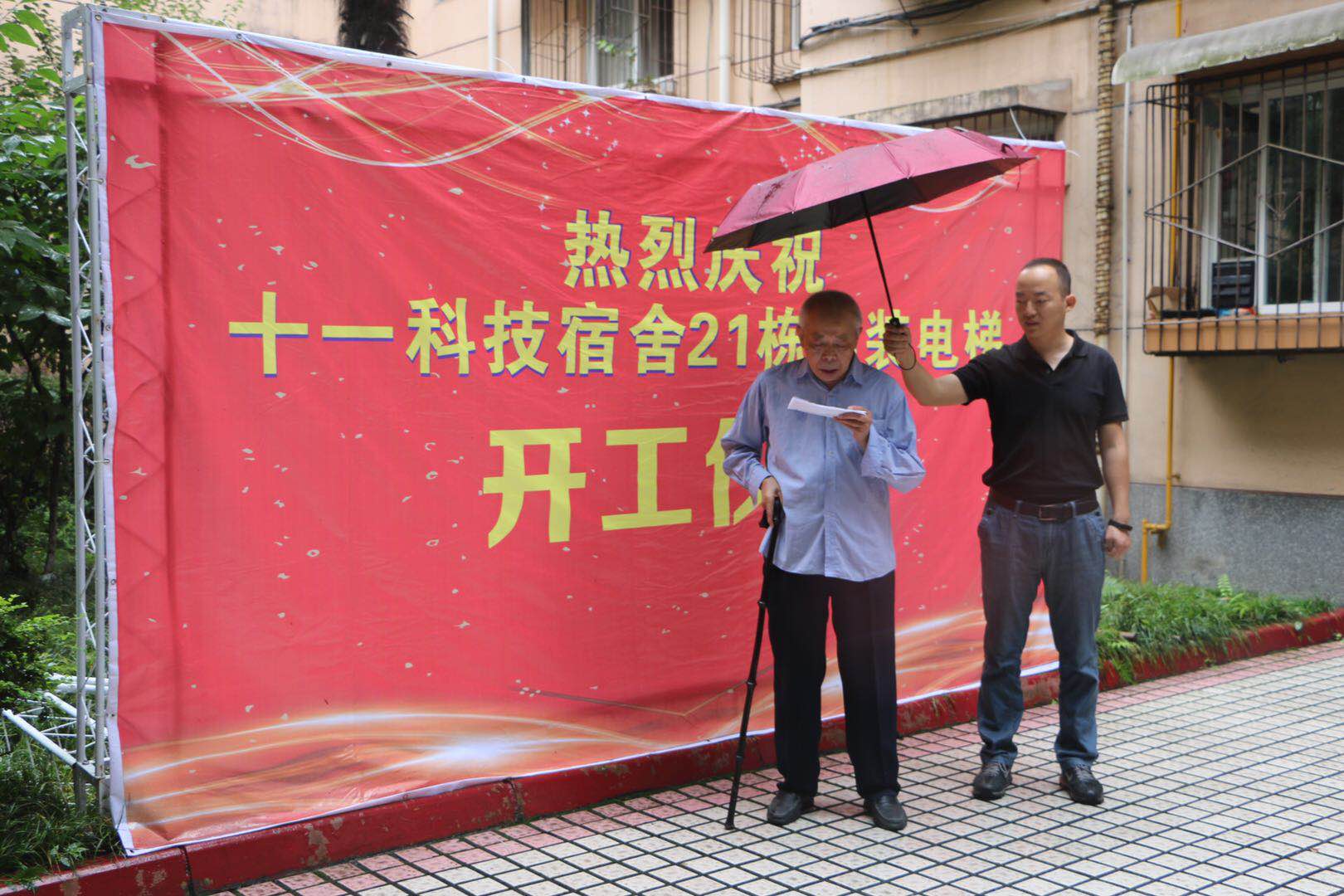 四川新闻网成都7月15日讯(记者 郭晓彤 摄影报道) 7月15日上午,十一科技家属院二十一栋一单元加装电梯工程开工仪式举行。成华区住建交局党组成员、成华房地产开发公司总经理刘刚,猛追湾街道党工委副书记、办事处主任廖锐,猛追湾街道副局级组织员汪颜,十一科技设计院纪委书记万峰等出席开工典礼。此外,十一科技建筑一院设计代表、富士电梯公司施工代表,以及十一科技家属业主代表到场表示庆贺。