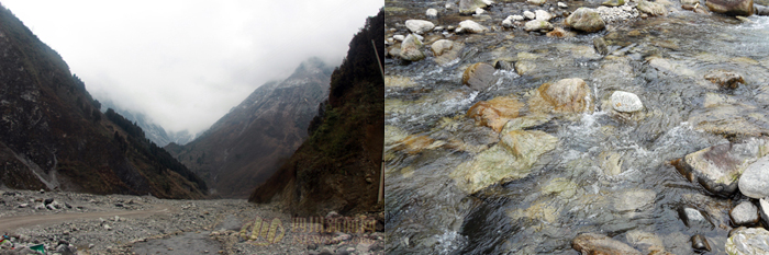 2019年2月18日,在绵竹市清平乡铁索桥站点附近。近处是潺潺小溪般的绵远河水(右),远处可以眺望沱江流域的正源。(卢永洪 摄)