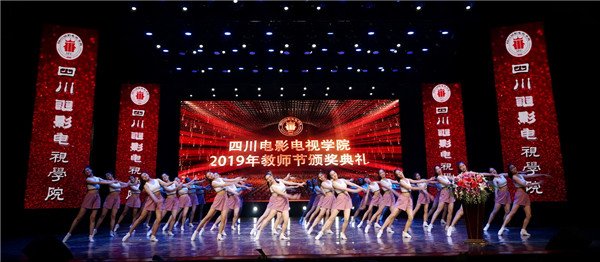 当晚,川影“2019年教师节颁奖典礼”在安仁校区贡院大剧院盛大举行。四川省教育厅民办教育处处长贾贵洲、省教育厅宣传统战处副处长罗杉杉、中共大邑县委副书记王琰、大邑县教育局局长杨文学、大邑县文体广新局局长周琴、中共大邑县安仁镇党委书记陈建刚等领导出席典礼,川影董事长黄元文、校长罗共和、党委书记罗映光、常务副校长李健、副校长王潞明、副校长叶文林、党委副书记韩卡兰、工会副主席刘国富等校领导及各院系部处负责人出席。大会由学校播音主持学院大型活动部、高摄传媒转播中心面向全国现场直播。