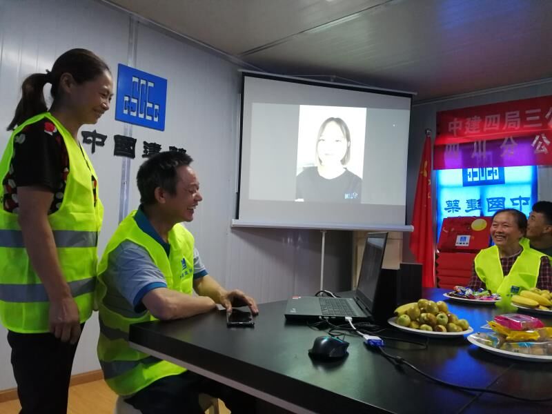 中建四局三公司四川分公司党委副书记、工会主席夏伟告介绍,农民工四海为家,哪里有活干就去哪里,除了春节他们回家,其他节假日都不会耍假的,成了建筑工人的常态。所以我们今天为他们过中秋节,和家人视频“团圆”。“城市美了,但背后有建设者的几多辛酸。”夏伟感叹道。