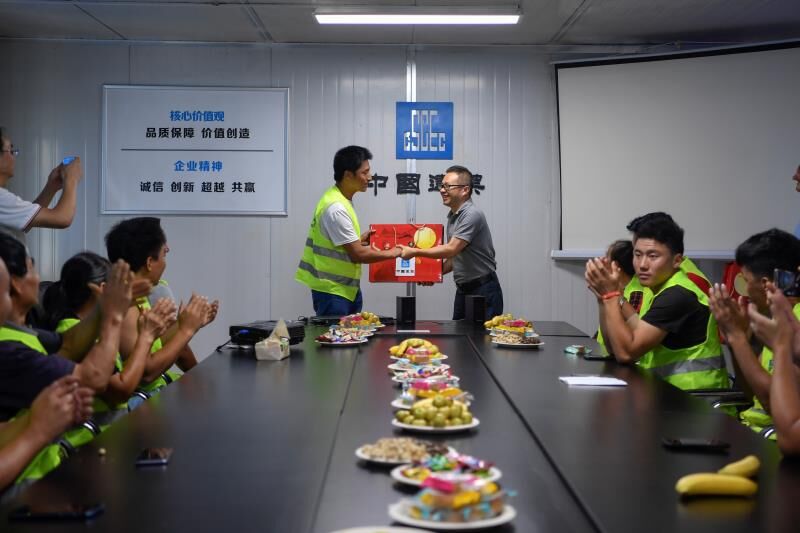由于加班加点抢工期,此中秋节也不放假。项目经理唐汉臣说,“民工们不能回家,项目部决定采用视频的方式让他们与家人团聚,过一个别样中秋节。”