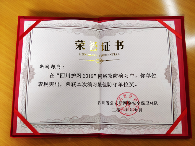 四川新闻网成都9月17日讯 “网络安全为人民,网络安全靠人民”是2019年国家网络安全宣传周主题。9月17日这天,四川新网银行捧回了网络攻防对战中斩获的“最佳防守单位奖”。今年7月8日-7月19日,四川省公安厅主办的“四川护网2019”安全攻防演习在成都举行。演习从交通、能源、金融、水利、政务服务等重点行业领域随机选取全省122家单位作为目标,采用资产扫描、漏洞挖掘、防护绕过、权限提升等网络攻击手段,在真实网络环境下进行攻防对抗演习。