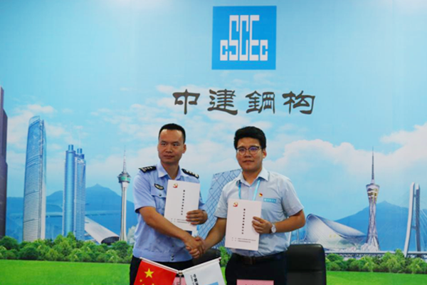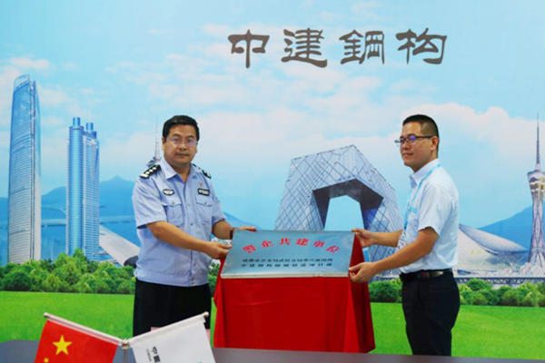 最后,华兴派出所教导员钟红明与中建钢构锦城绿道项目党支部副书记魏梦潇分别代表两个单位签订了警企党建共建协议书。