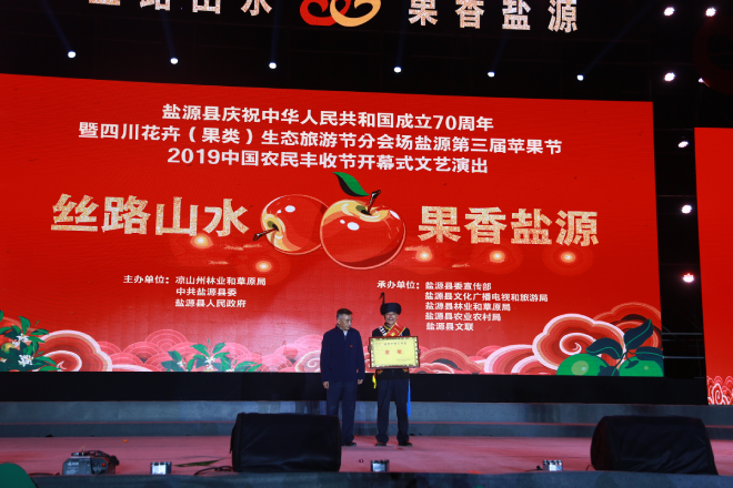 四川新闻网成都9月25日讯 9月23日,由四川省林业和草原局指导,凉山州林业和草原局、中共盐源县委、盐源县人民政府共同主办,以“丝路山水·果香盐源”为主题的2019四川花卉(果类)生态旅游节分会场暨盐源县第三届苹果节在凉山州盐源县开幕。