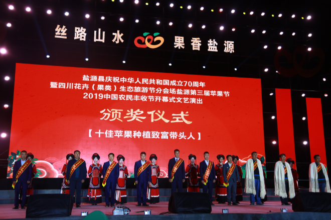 开幕式上举行了“盐源苹果王”“十佳苹果种植致富带头人”评选颁奖,还进行了精彩的文艺汇演活动。盐源县借此契机庆祝苹果产业增效、农民增收,搭建起盐源和各界人士加强经贸合作、文化交流的平台。