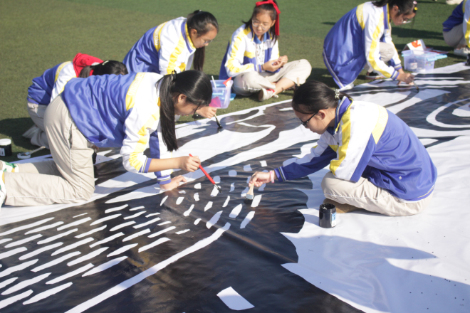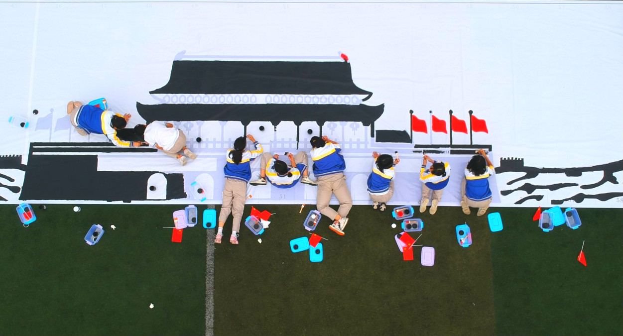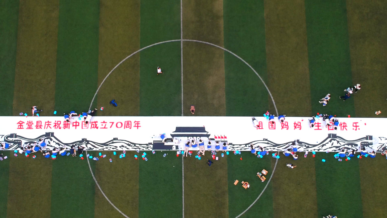 开展仪式上,一百二十名少年,围着一幅3米宽、70米长的画布挥毫泼墨,经过半小时的共同努力,中国长城跃然纸上,“爱祖国、爱家乡”“金堂县庆祝新中国成立70周年”“祖国妈妈万岁”鲜红字体,正如孩子们一颗颗爱国爱家的赤子之心。孩子们舞动手中的小红旗,与在座的嘉宾们一道,深情唱起了《我和我的祖国》,红旗闪耀,歌声悦耳。