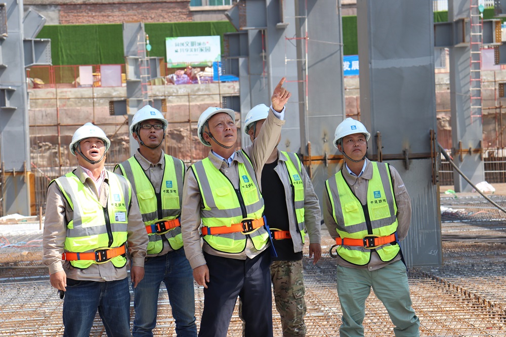 图为项目生产经理吴斯平带队巡视现场