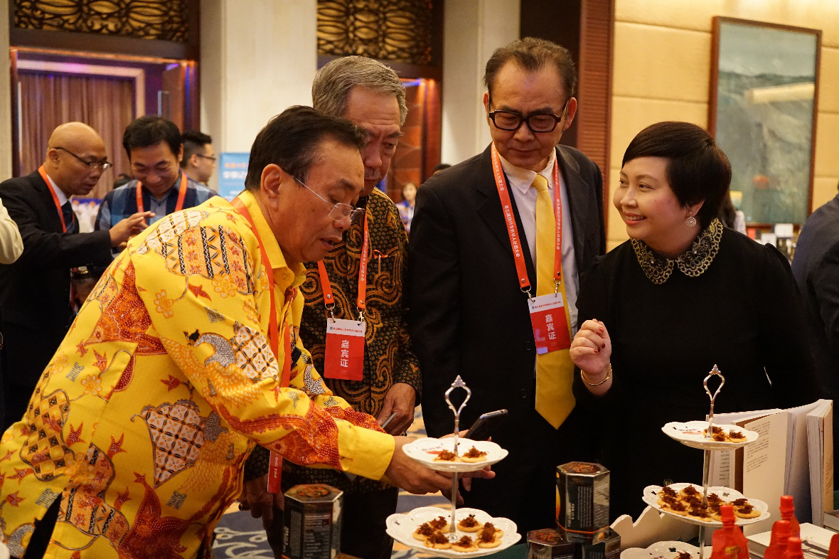 李锦记中国企业事务总监赖洁珊(右)向嘉宾介绍李锦记产品