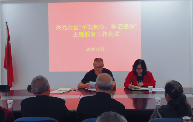 兴元社区于9月29日召开“不忘初心、牢记使命”主题教育第一次学习研讨会,包片领导金马镇镇长蔡玖华到会进行指导。会上,金马镇镇长蔡玖华从为什么要开展主题教育、现在的中美关系形势、作为一名普通党员应该怎么做三个方面进行了指导,强调全体党员要维护“两个核心”,坚定“四个自信”,为建设成都医学城A区作出自己的贡献,实现自我价值。