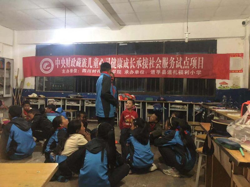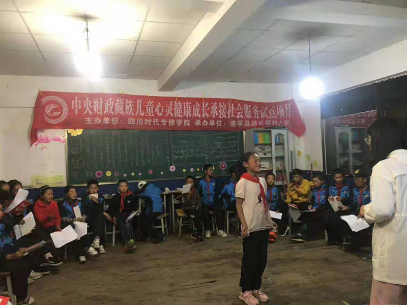 四川新闻网成都10月9日讯 由四川时代专修学院主办、甘孜州道孚县道扎福利小学承办的中央财政藏族儿童心灵健康成长服务试点项目于9月下旬正式启动后,四川时代专修学院专门组成一个教学团队负责该项目的实施。学院派团队的李振禹和候田田3位老师长住学校并与学校老师一起上课。