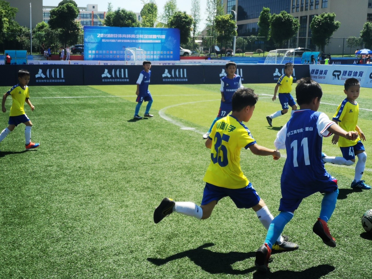 绿茵场上,小将们不畏风雨和烈日,个个精神抖擞,传球、盘带、过人、射门,技术娴熟,配合流畅,挥洒汗水,展现运动员风采。