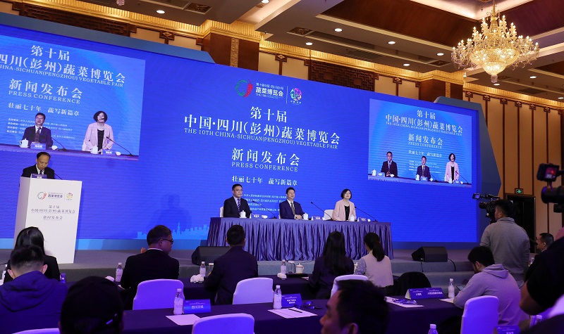 四川新闻网成都10月16日讯 10月16日,第十届中国·四川(彭州)蔬菜博览会(以下简称“菜博会”)新闻发布会在成都世纪城国际会议中心举行。本届菜博会将于11月1日至11月5日在四川彭州举行。由中华人民共和国农业农村部、四川省人民政府主办,成都市人民政府、四川省农业农村厅、四川省商务厅承办。