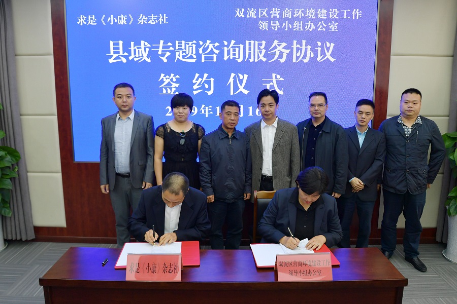 仪式上,《小康》杂志社事业发展总监李志怡与双流区行政审批局局长罗萍就县域专题咨询服务协议进行签约。国家信息中心中国区域发展研究院秘书长刘波为双流区授牌。
