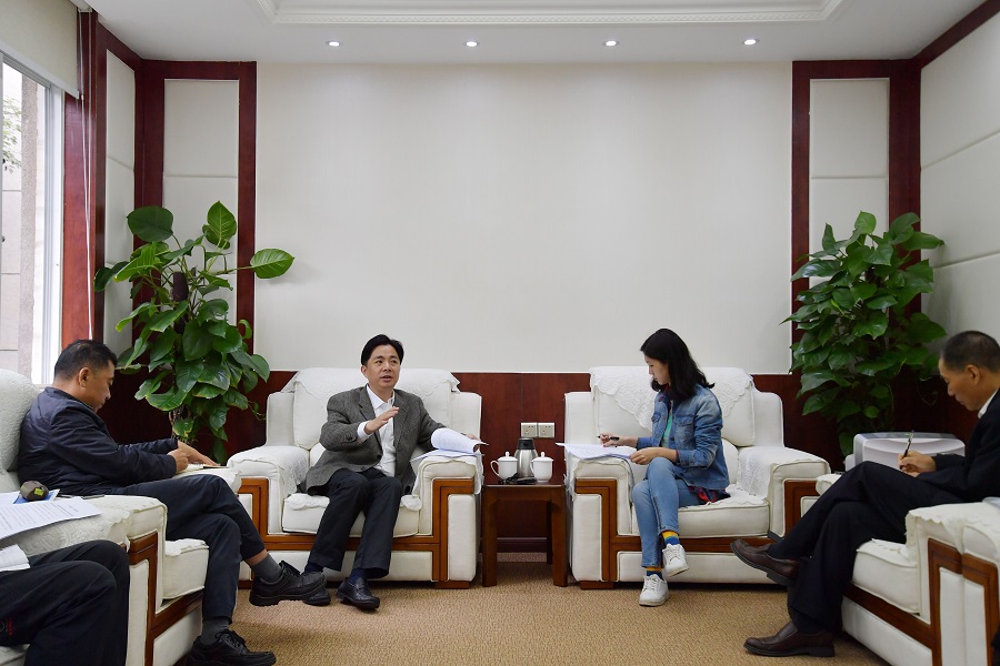 签约授牌仪式前,曾虎代表双流区接受调研课题组的深度访谈。(锁千程 李馥君 王鸿明 赵飞 刘婷 刘云涌)