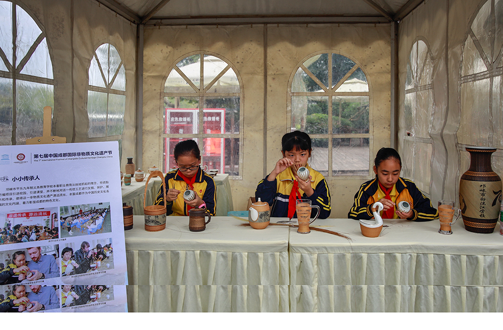 非遗产生于人们的生产生活实践,邛崃让非遗走进了学校、走进了社区、走进了企业、走进了古镇、走进了市民的生活。4天时间里,邛崃本地特色龙灯、狮灯、幺妹儿灯、平乐花轿迎亲等7支原生态民俗队伍频现古镇街头,来自平乐古镇的亚洲第一长竹龙现身活动现场,本地22个非遗项目走进各个镇乡(街道),社区居民在家门口就能簇拥在邛茶制作技艺、瓷胎竹编、余氏药捻灸传统中医疗法、花秋贡茶制作技艺等非遗传承人的身边,近距离体验着传统工艺的魅力。此外羌绣、羌笛、孔明灯等非遗项目也在现场进行活态展示,游客和观众可参与体验。