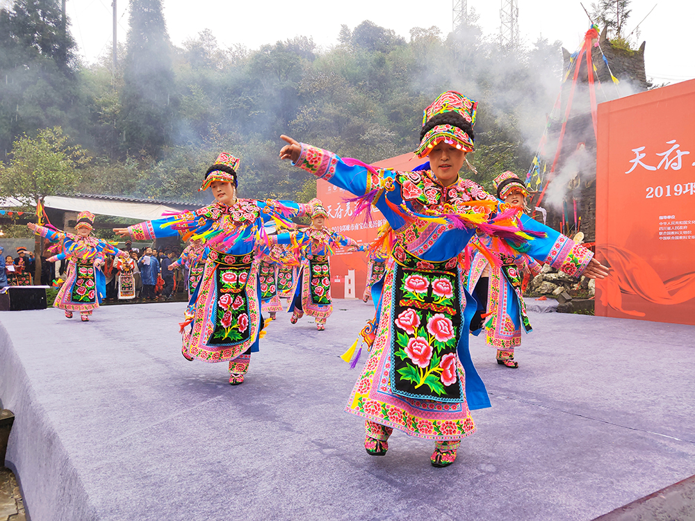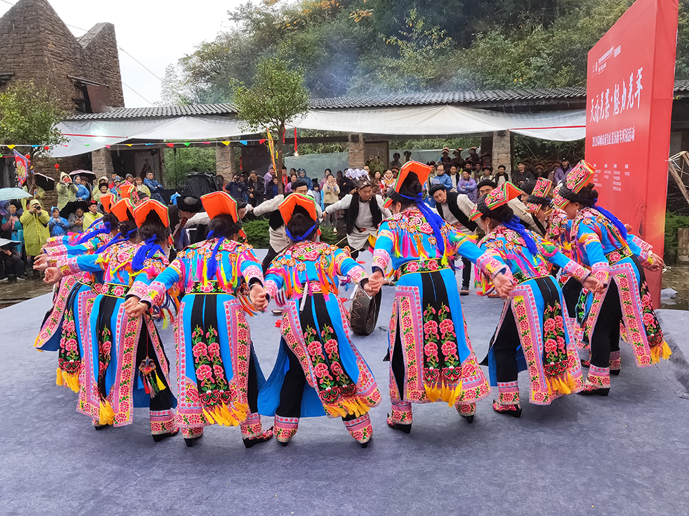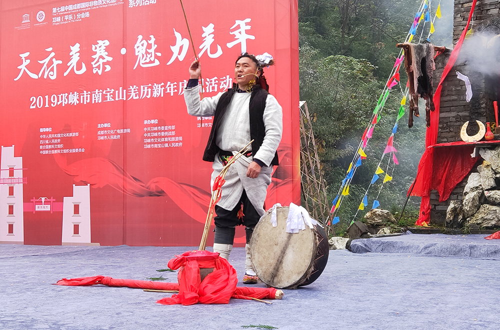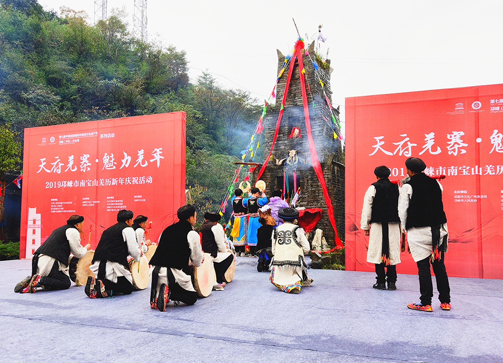 四川新闻网成都10月26日讯 羊皮鼓儿敲起来、沙朗舞起来……10月26日,“天府羌寨·魅力羌年”2019邛崃市南宝山羌历新年庆祝活动在南宝山镇木梯村羌寨文化广场举行。作为第七届中国成都国际非物质文化遗产节邛崃分会场活动的延续,活动以羌历新年为节点,充分展示羌族文化非遗项目的魅力,展现羌族人民丰富多彩的生活和良好的精神面貌。