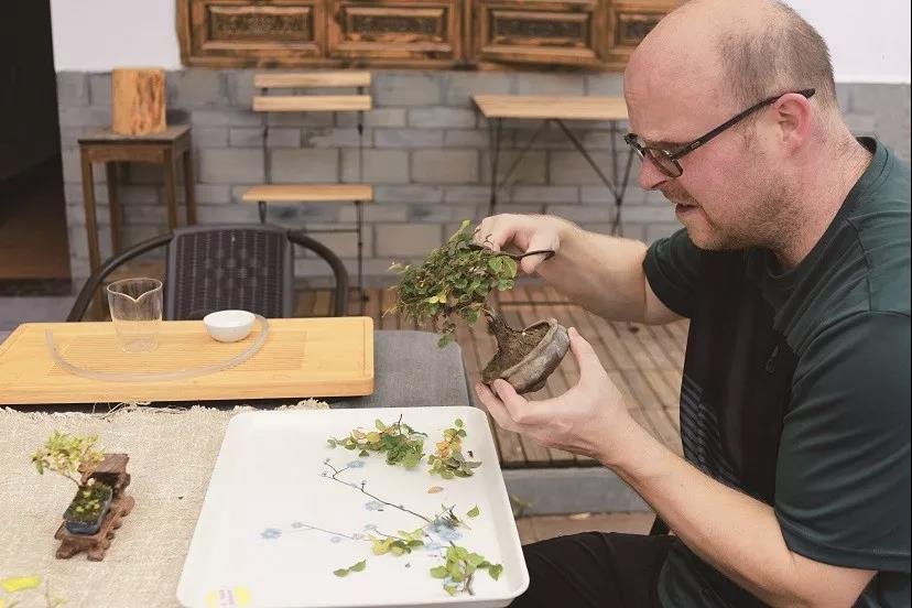 四川新闻网成都11月22日讯 音乐人,教师,盆景艺术家,集三重身份于一身的查德·辛克莱尔(CHAD SINCLAIR)来自加拿大温哥华,今年41岁的他已经在中国待了16年。不久前,他把自己的工作室从成都市区搬到了位于崇州的严家弯湾,潜心研究川派盆景。尽管他有自己的名字,但还是喜欢大家叫他白熊,他的盆景园也因此命名为“白熊盆景园”。