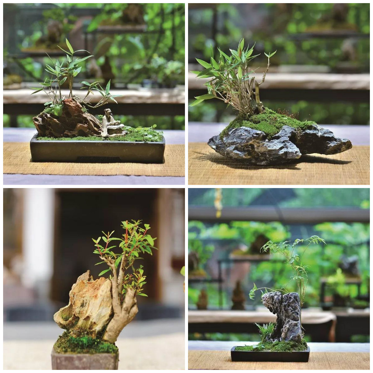 白熊的每一个盆景作品的诞生,都要经历灵感产生、创作冲动、巧妙构思、选择材料、制作完成、欣赏微调、定型发布的过程。这个完整的过程,有时一会儿就可以完成、有时花费一天时间、有时几天、几个月……处于创作中的白熊常常独处,沉默不语,不喜欢被打扰,一旦作品完成,他就会一边品茶,一边注视着盆景,细细品味一枝一叶、一山一石的意境之美。