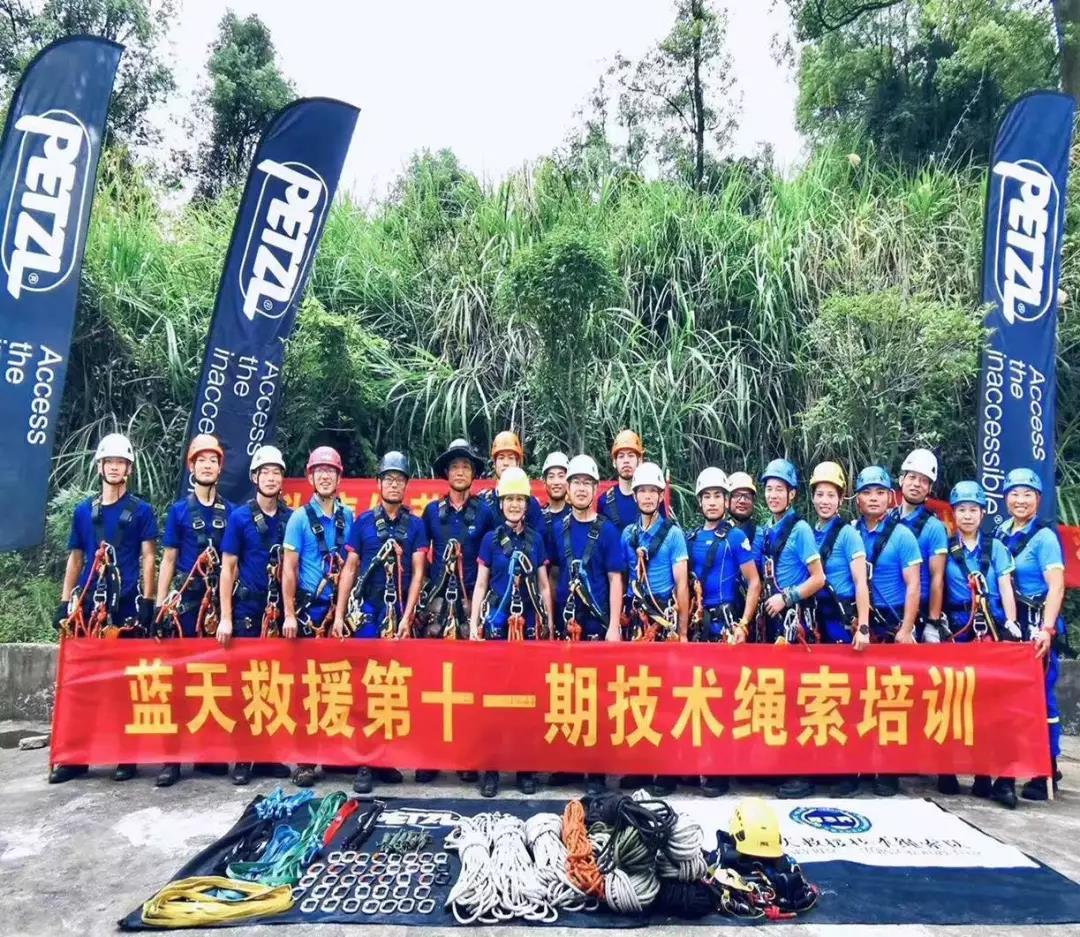 崇州市红十字蓝天救援队,于2018年筹建,2019年7月申请成立,拥有正式队员12名,预备队员26名,志愿者136名。这是一支专业化的民间志愿救援队伍,以专业化、国际化救援机构建设为目标。作为一支综合救援队,执行自然灾害救援、山野救援、水域救援、洞穴救援,航空救援、地震城市救援及各种特殊环境下执行公益救援任务,同时进行户外安全和紧急避险知识的普及培训、大型群众性活动的安全保障工作。这些公益服务,都是无偿的。