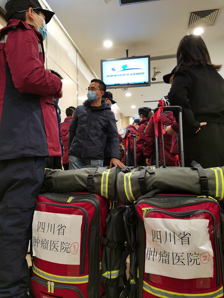 四川省肿瘤医院党委书记郎锦义说:“作为肿瘤专科医院,我们的医护人员面对的都是患大病、重病的肿瘤病人,危重症病人的处置是我们的强项。我们的医疗队到了湖北贡献川肿力量,一定会不辱使命!”