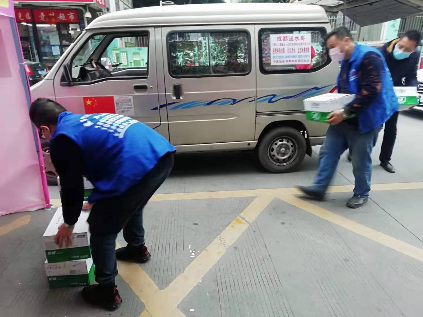 四川新闻网成都2月8日讯(记者 漆奇)2月7日下午,成都高新区桂溪街道双祥社区返蓉人员1号门、2号门登记点,一辆面包车“嘎吱”一声停在路边,成都“送水哥”两名员工迅速从车卸下16箱矿泉水和2瓶桶装水送给工作人员,希望他们保重身体,并承诺“疫情特殊时期,社区用水,全部免费捐赠”,然后驾车迅速离开。