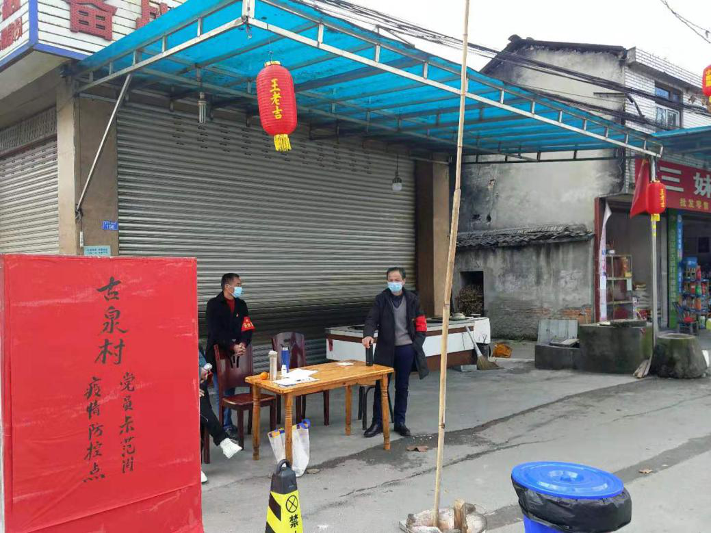 三江街道古泉村退休支部李光田、刘林,李光田1989年至2004年担任古泉村党支部书记,刘林2004年至2019年担任古泉村党支部书记,现担任古泉村退休党支部书记。自1月25日新型冠状病毒肺炎防疫工作开展以来,两人积极主动参与到古泉村疫情防控第一线,他们不畏严寒,风雨无阻,每天和其他党员一道早早地来到党员示范岗开展执勤,对过往车辆、人员进行排查,测试体温,做好登记,用自己的实际行动,展现了共产党员的先锋模范作用。
