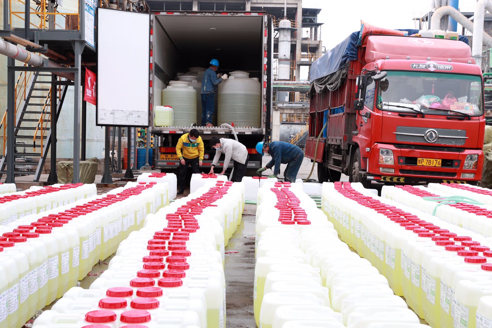 成都华融化工有限公司是全成都唯一的液氯及次氯酸钠原料生产企业。目前,华融化工已累计生产次氯酸钠近2000吨。其中,向成都市各区(市、县)免费捐赠210多吨;向下游消毒剂企业提供了充足原料用于“84消毒液”等消毒用品生产,全力满足成都市的消毒用品需求;向湖北、湖南、广东等地配送121批次。