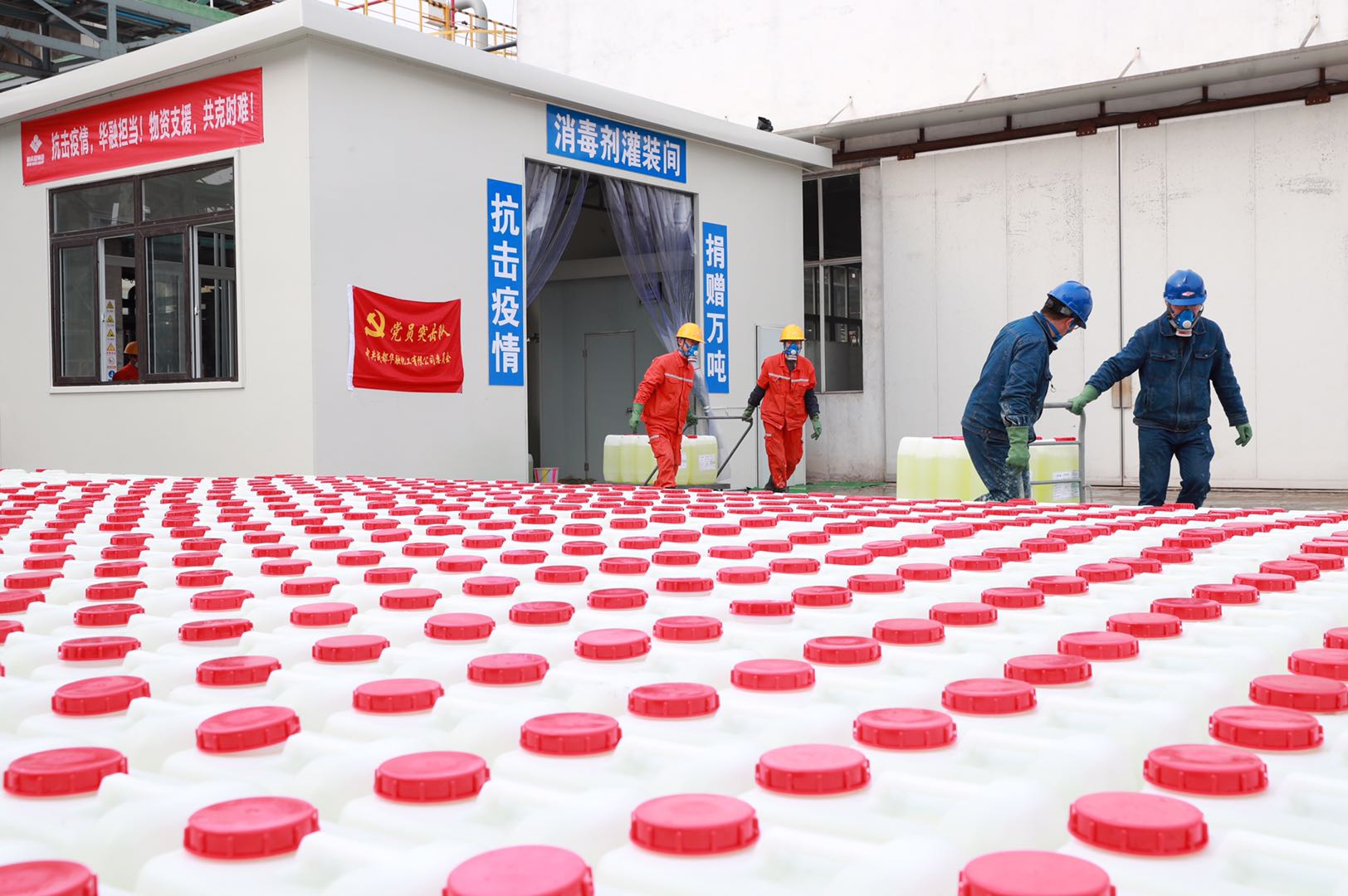 据了解,1月21日,彭州市启动应急物资保障预案,协调华融化工、中光洗消剂为代表的消毒用品企业和以恒明科技为代表的防护用品企业复工复产;1月21日,华融化工立即启动工厂设备大修;1月29日完成设备大修,终止职工春节休假;1月30日,集团研究决定向成都各区(市)县捐赠1万吨次氯酸钠消毒液;1月30日,企业开始复产,每天满负荷生产,最大限度满足疫情防控一线物资需求。