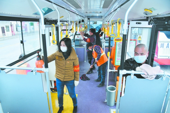 “我们每天都会对公交场站、公交车辆消毒三次以上。”市公交集团相关负责人介绍,为了防控疫情,市公交集团进一步加强公交车辆、公交场站清洁消毒工作。重点对公交车扶手、座椅、垃圾桶等车厢部位进行清洁消毒,做到车辆不消毒不上线。“车辆也要做到趟趟保洁,车辆到达首末站后及时更换垃圾袋,打开车窗通风换气。”市公交集团相关负责人介绍,在行车中,公交车辆均开启新风装置,开启驾驶室左侧车窗,确保车内空气流通。