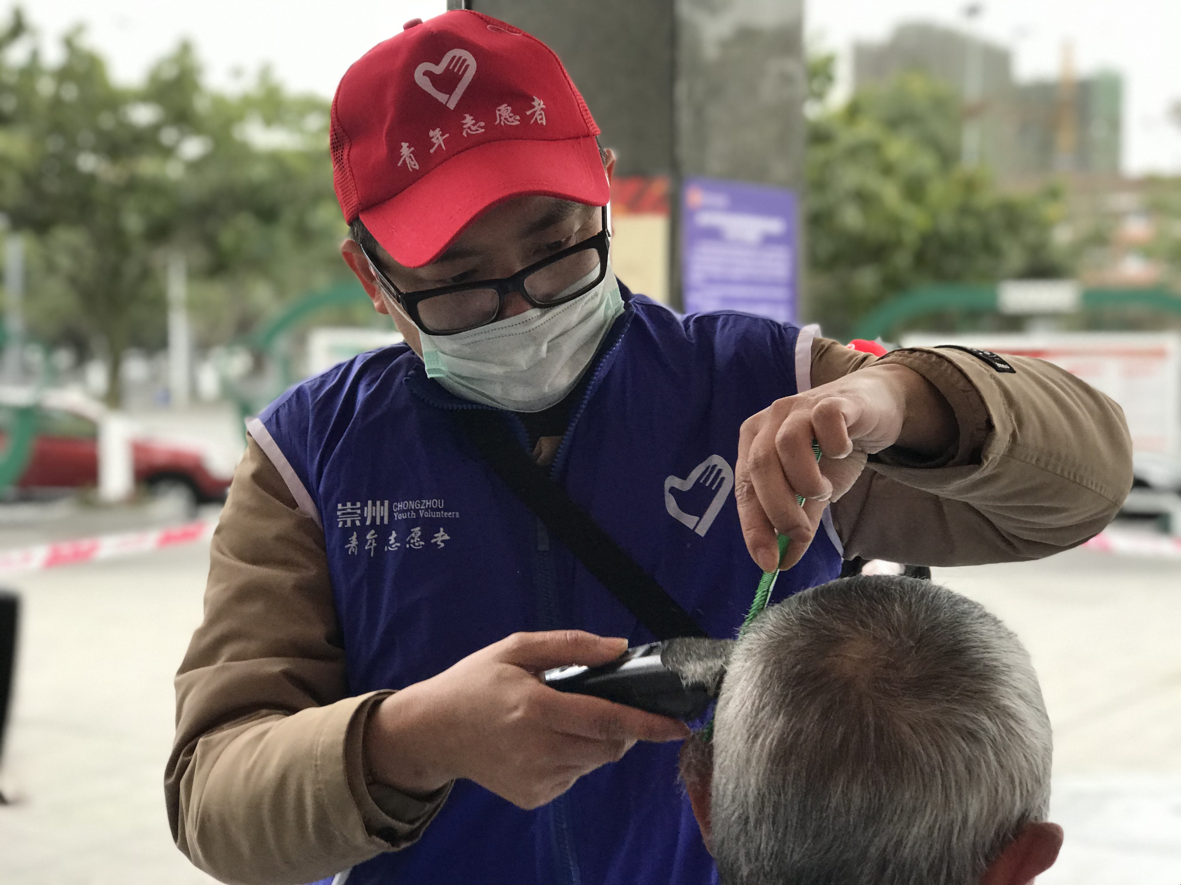 “真的非常感谢这些理发师,头发一剪,人立马有精神了,信心也增加了。”崇庆街道志愿者周勇说道。