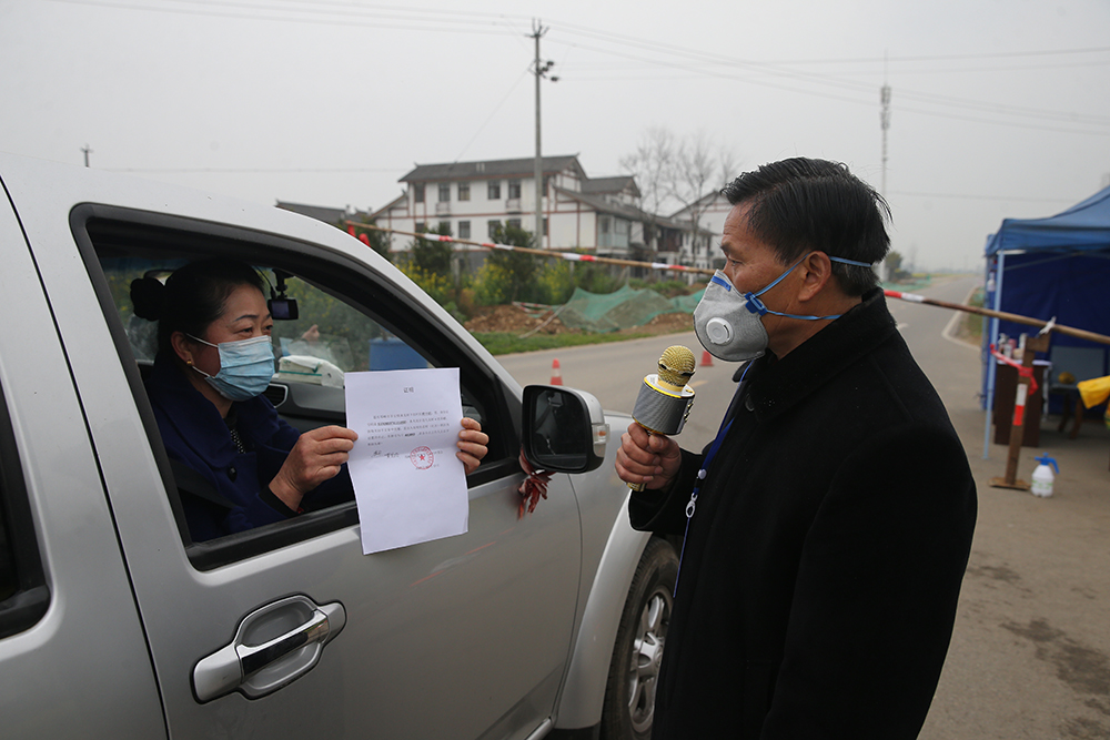 出示出行通行证后,经车辆登记检查,红外线测温仪测量,以及车辆和人员消毒后,邛崃市羊安街道来龙村7组的蜂农鲜中跃、徐春玉夫妻俩驾驶皮卡车,将一桶桶蜂箱放置在高埂街道九龙村菜花地里,准备趁着花期抓紧时间采蜜。