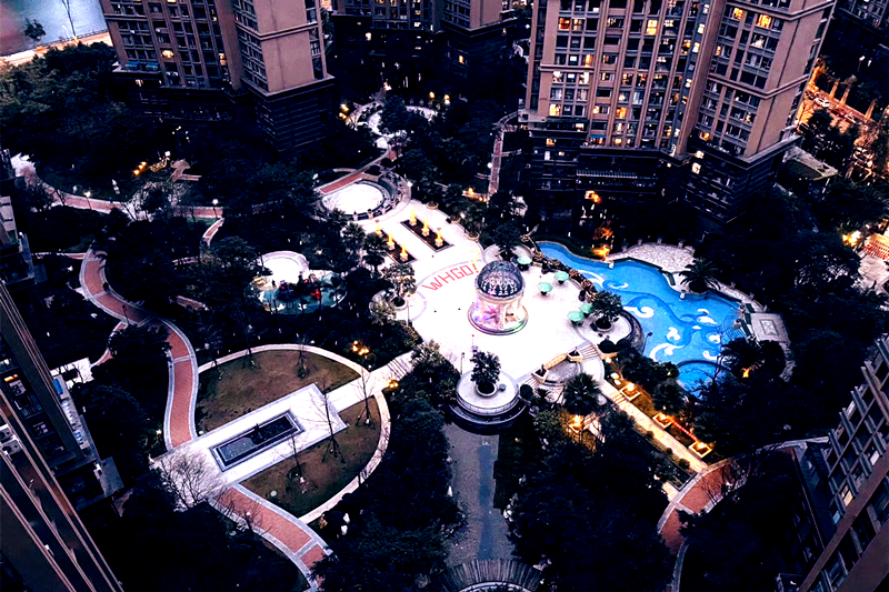 据了解,2月17日上午,成都高新区桂溪街道永安社区半岛城邦三期的5名志愿者在物业的帮助下开始了忙碌的现场布置,他们在中庭用心地绘制出中国地图,用彩灯装饰在上面,并用红色的绸缎在地图中央铺出了“WH GO+爱心”的图样,用群众从自己家中捐出来的200余支蜡烛立在上面;还有人在旁边调试无人机,寻找最佳的拍摄角度。