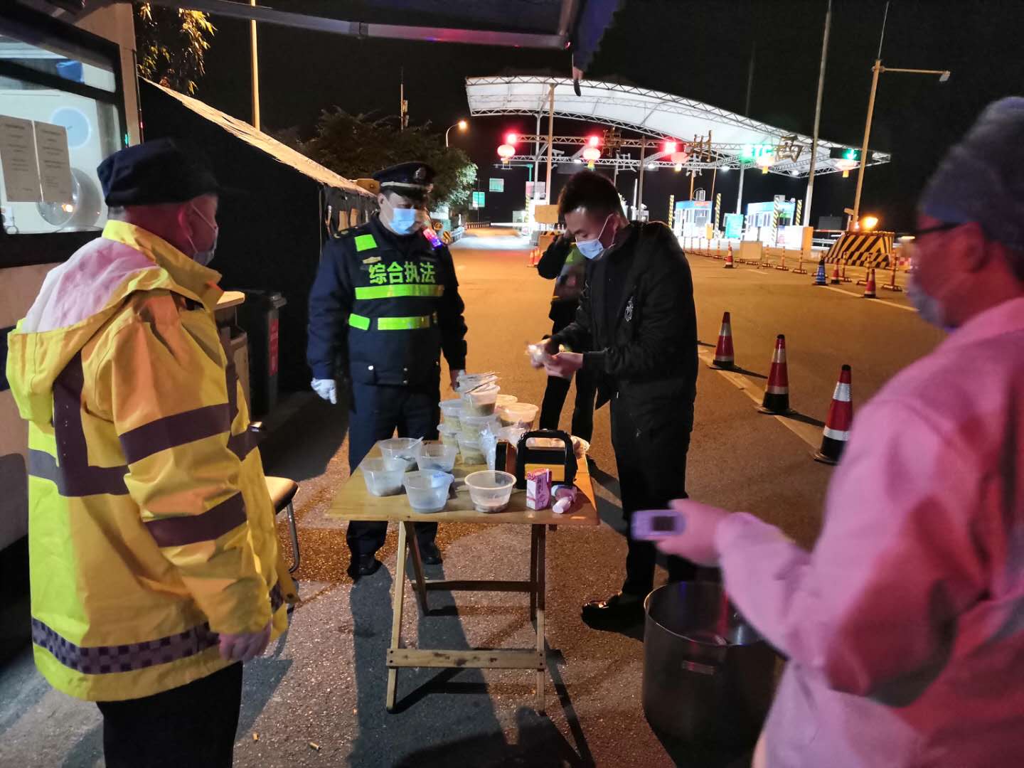 四川新闻网成都2月18日讯 “同志们,大家辛苦了,快来吃点汤圆暖和暖和身体吧!” 2月17日晚上11点10分,正在成名高速崇州出口站参与疫情防控工作的工作人员收到了一碗热乎乎的汤圆。大家吃在嘴里,暖在胃里,甜在心里,纷纷表示感谢,而两位送餐的爱心人士已经是连续第23个夜晚前来送餐了。