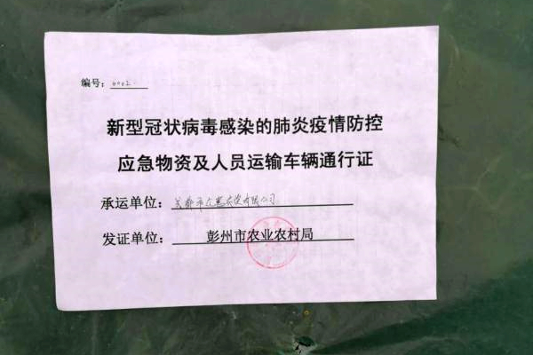 当天,彭州市农业农村局将该情况紧急报送到市疫情防控指挥部,经研究后,决定启动农业生产物资运输通行证制度,为彭州市域内农资配送运输开通“绿色通道”,由市农业农村局负责发放专用通行证。据了解,2月15日,成都市众慧农资公司和彭州市稼禾农资公司都已取得农资配送运输通行证,解决了农资运输的燃眉之急,保障防疫、春耕两不误。