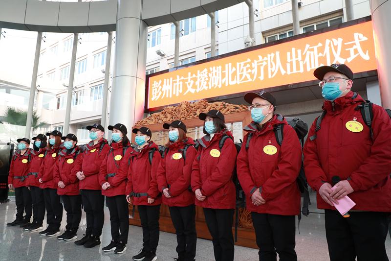 四川新闻网成都2月21日讯(记者 漆奇) “誓与疫情抗争到底,坚决打赢抗疫阻击战,不辜负祖国和人民的重托!岂曰无衣,与子同袍,与子同泽,与子同裳!”2月21日上午,彭州市第一批支援湖北医疗队11名医务人员在彭州市行政中心集结出征。彭州市委书记、市长王锋君,市委副书记张雄正,市委常委、统战部部长晏渃海,市政府副市长徐苒鑫,市卫健局领导班子为他们壮行。