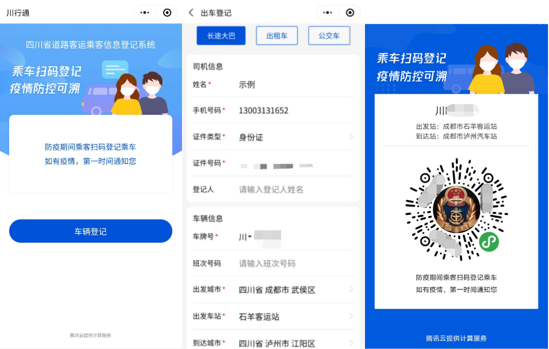 四川新闻网成都2月28日讯 四川省作为人口及劳务输出大省,伴随着返工潮的到来,客运交通成为疫情防控的重要一环。近日,四川省交通运输厅道路运输管理局联合腾讯云打造的“四川省道路客运乘客信息登记系统” 正式上线,依托“川行通”微信小程序,司机可生成班次车辆专属二维码,乘客乘车时扫码填写身份信息。后续如遇乘客确诊感染,相关部门可追溯同车乘客信息,并第一时间通知同车乘客。