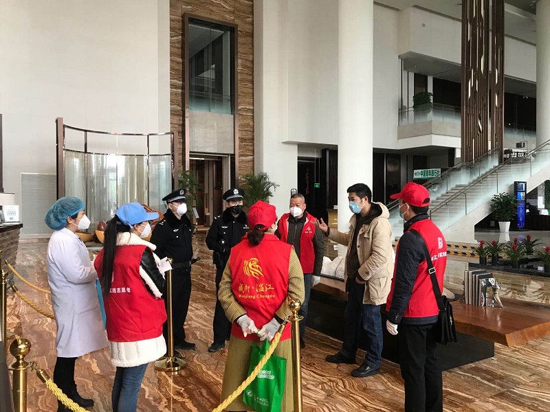 自1月26日临危受命入驻江安社区以来,贺明清每天工作达14个小时,微信运动步数每天都要接近3万步,与江安社区工作人员一起开展疫情的防控工作,在社区内多处张贴宣传资料、悬挂横幅、在各小区主要出入口播放疫情防控录音,指导各小区物业开展对进出小区人员测量体温、现场登记等管控工作,为社区筑起一道抗击疫情的坚固防线。