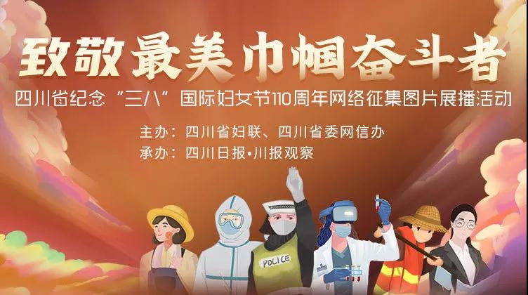 四川新闻网成都3月5日讯 为认真贯彻落实习近平总书记关于坚决打赢疫情防控阻击战,夺取疫情防控和经济社会发展双胜利的重要指示精神,贯彻落实全国妇联和省委省政府的重要安排部署,四川省妇联联合四川省委网信办,聚焦抗疫和发展,以“立足岗位·争做最美巾帼奋斗者”为主题,以线上活动为主,开展致敬巾帼—四川省纪念“三八”国际妇女节110周年系列活动,组织动员全省妇女和家庭在各级党委政府的统一领导下,为坚决打赢疫情防控的人民战争、总体战、阻击战和决战脱贫攻坚、决胜全面建成小康社会贡献巾帼力量!