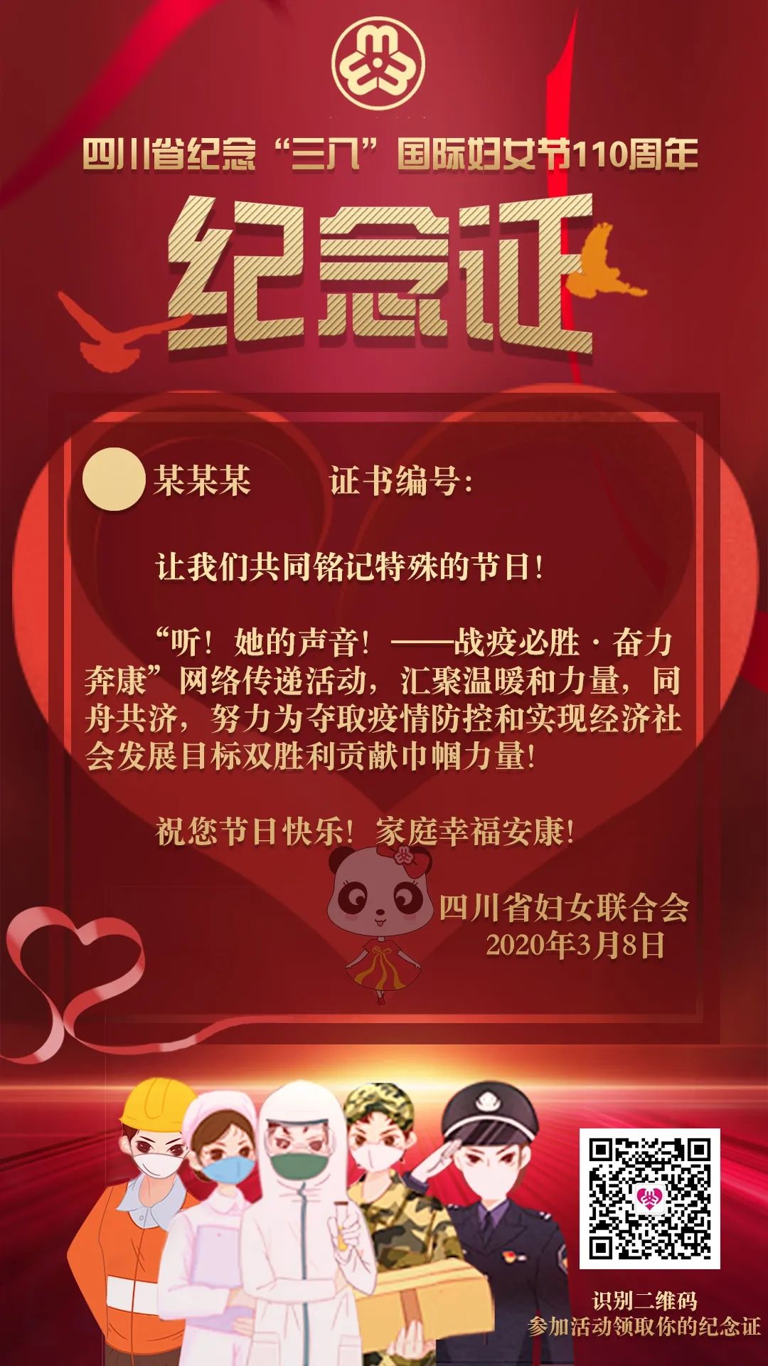 同时,“三八”节期间,四川省妇联通过在人民网搭建“巾帼在行动”专栏,在川报观察、四川新闻网、“四川幸福女性”推出“致敬巾帼—四川省纪念‘三八’国际妇女节110周年线上专题”,在成都地铁7、10号线站点播放“致敬巾帼”系列公益短片等方式,加强舆论引导,为坚决打赢疫情防控的人民战争、总体战、阻击战贡献半边天力量,为实现经济社会发展目标贡献巾帼力量。
