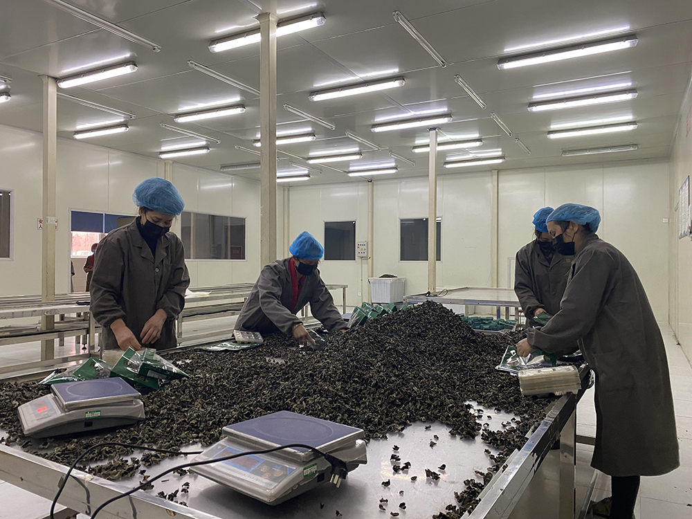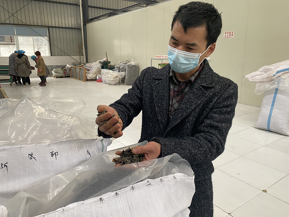 3月16日 成都三益农业开发有限公司的产生车间里机器轰鸣,一片片木耳在生产线上经过烘干、滤渣进入了加工间,工人们有的麻利的装袋过称、有的动作迅速一袋接一袋的封口装箱,入目之处皆是一派紧张而忙碌的景象。