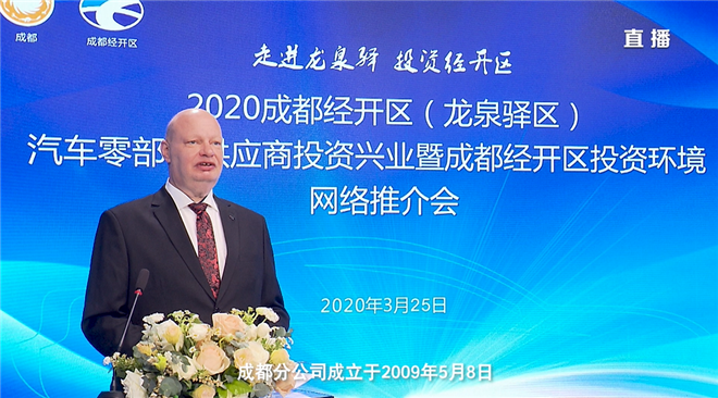 ”成都经开区已经成为成都发展潜力最大、投资价值最高、发展最有希望的区域,也是汽车产业发展最具活力、最有希望的区域,更是汽车零部件企业布局西部的首选区域。”杜海波在推介会现场向在线参会的企业代表们发出诚挚邀请,并表示将以最优惠的政策、最优质的服务,与大家携手合作、共谋发展。杜海波介绍说,成都经开区作为国家新型工业化汽车产业示范基地,也是四川乃至西部汽车制造的龙头,目前已聚集一汽大众、一汽丰田、沃尔沃等整车企业11家,2019年整车产量超过100万辆、产值突破2000亿元,汽车产量占据全省90%、全市98%的份额。当前,成都经开区正在抢抓成渝双城经济圈、成都“东进”和第31届世界大学生运动会承办地的战略机遇,充分利用汽车产业调整期的窗口机遇,全力推进汽车产业转型升级。