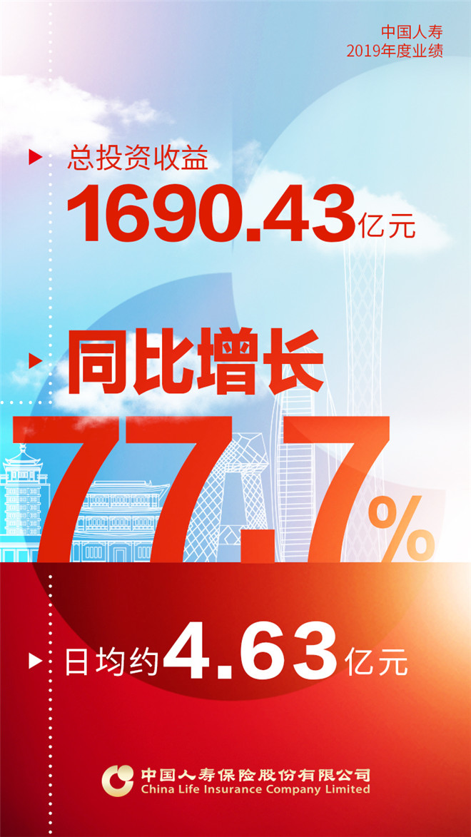 本报告期内,本公司持续加强资产负债管理,不断优化资产配置策略,公司投资收益大幅提升。本公司实现总投资收益1,690.43亿元,较2018年同比提升77.7%。